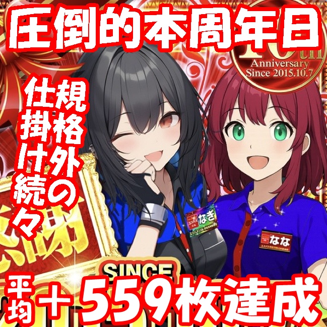さすが本周年日だけあり「平均+559枚&総差枚+約19万枚」と抜群の結果に!