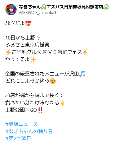 公式Xでは「なぎちゃんの独り言」もしっかり発動。公式Xのお知らせは大体20時に、そこから30分後に独り言がポストされる傾向にあるので、しっかりチェックしておきましょう。