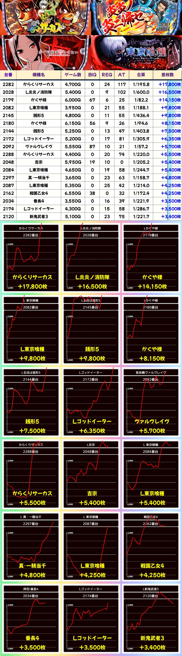 前述した仕掛け以外にも「からくりサーカス」「L炎炎ノ消防隊」「かぐや様」の万枚オーバーなど単品の優秀台もたっぷりありました!