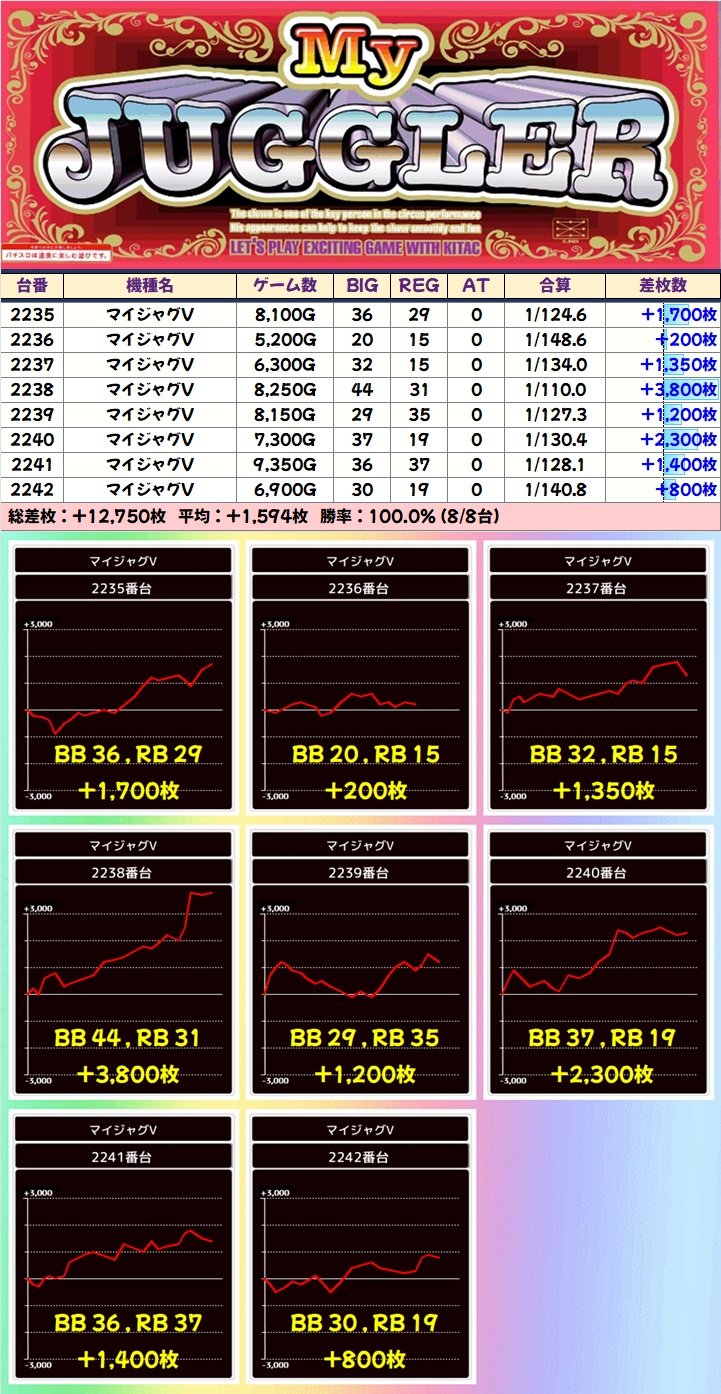 今回も平均+約200枚&総差枚+5.9万枚と安定の好結果!