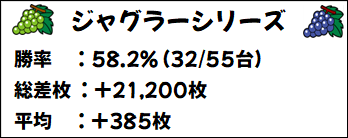 ジャグシリーズは全体でも勝率が約6割、平均+385枚と非常に優秀でした!