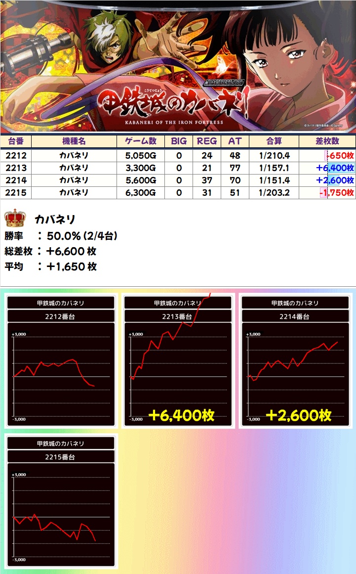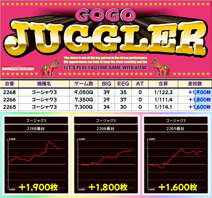 +6400枚&+2600枚と半数の台が爆発! 不発台もしっかり稼働しているので高設定示唆などが出ていたかなと!