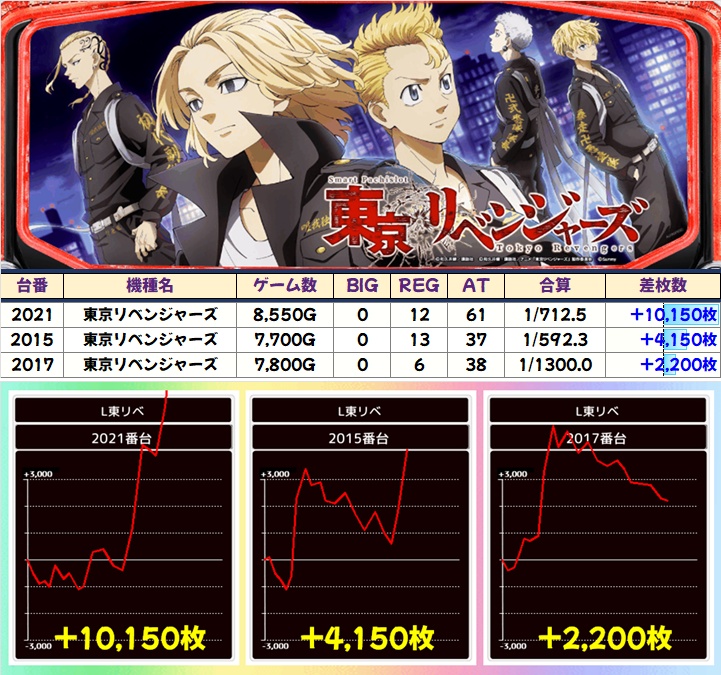 東京リベンジャーズ(4/8台+)➡平均+1,781枚