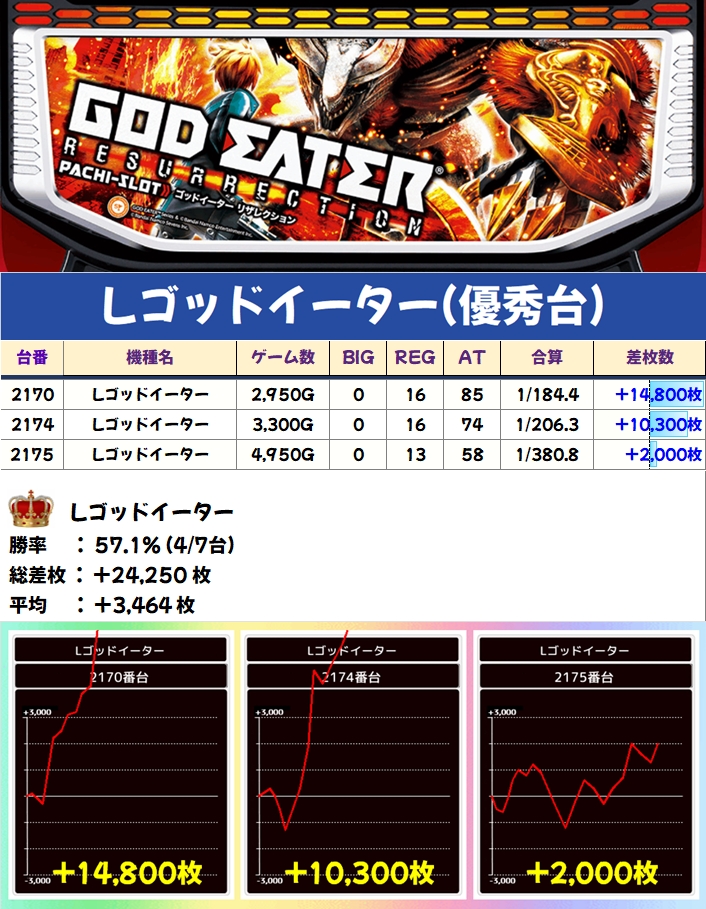 ゴッドイーター(4/7台+)➡平均+3,464枚