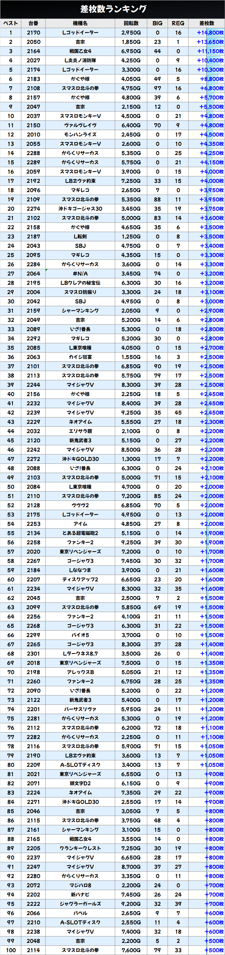 🏆総差枚…+100,800枚