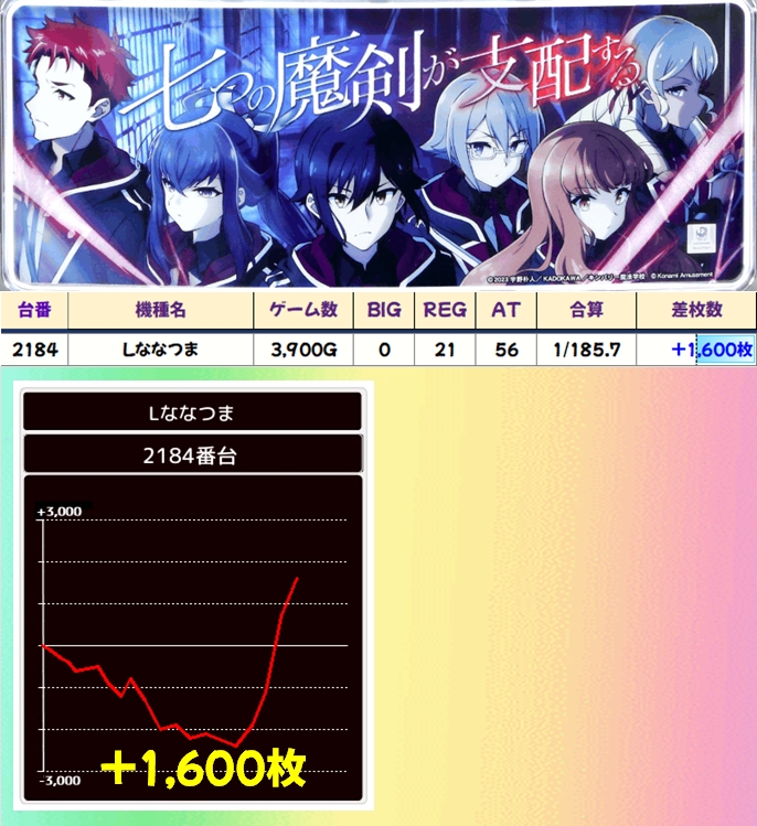 ななつま(1/2台+)➡平均+650枚
