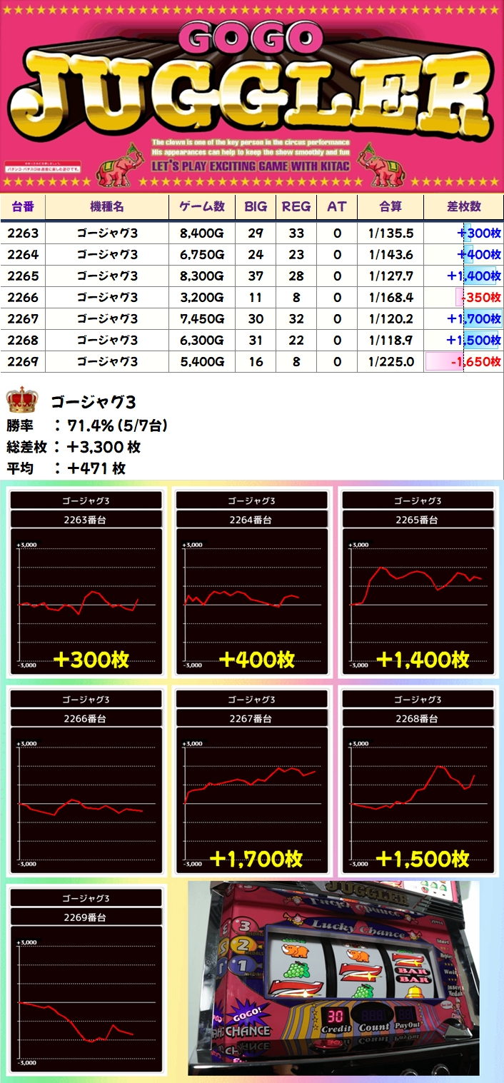 ゴージャグ3(5/7台+)➡平均+471枚