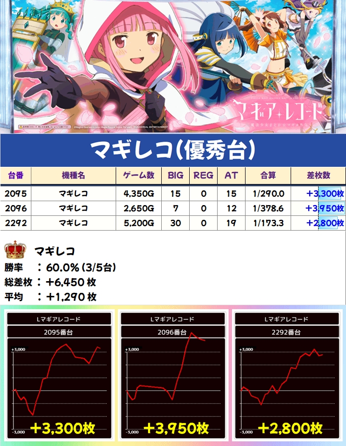 マギレコ(3/5台+)➡平均+1290枚