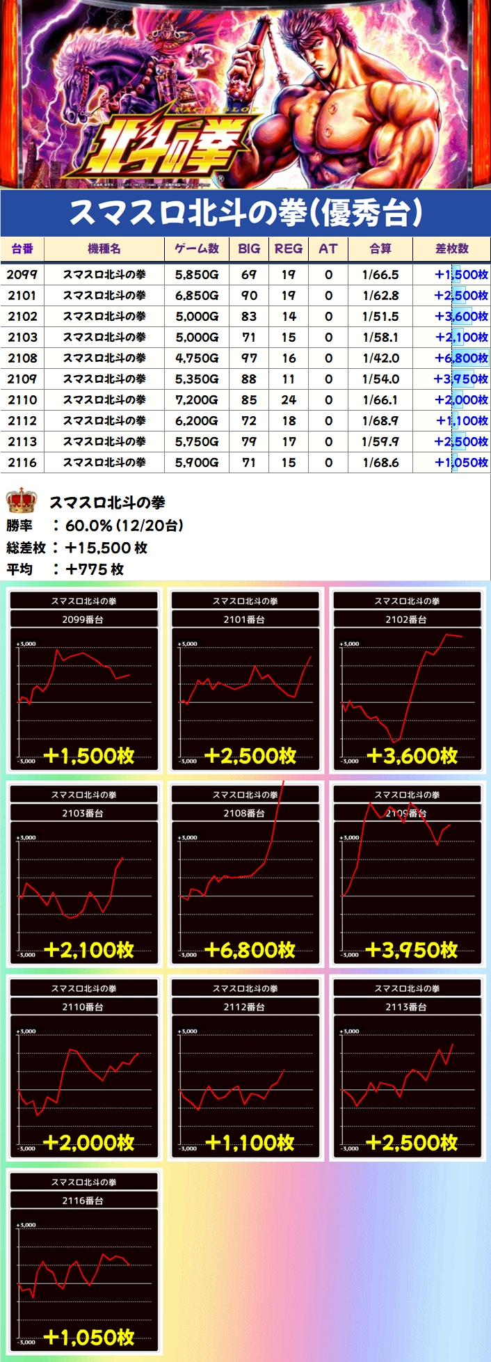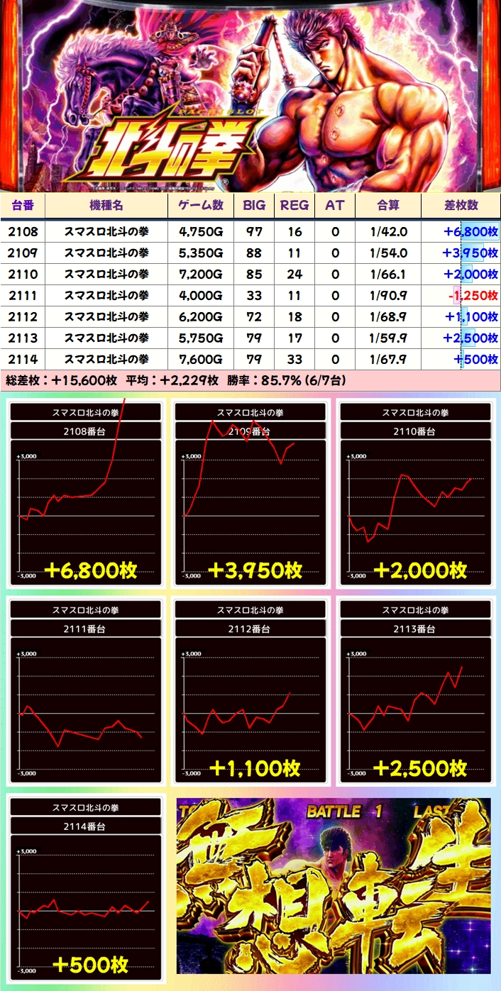 スマスロ北斗の拳(12/20台+)➡平均+775枚