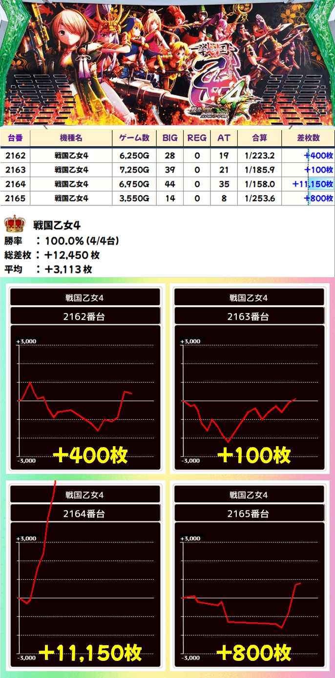 戦国乙女4(4/4台+)➡平均+3,113枚