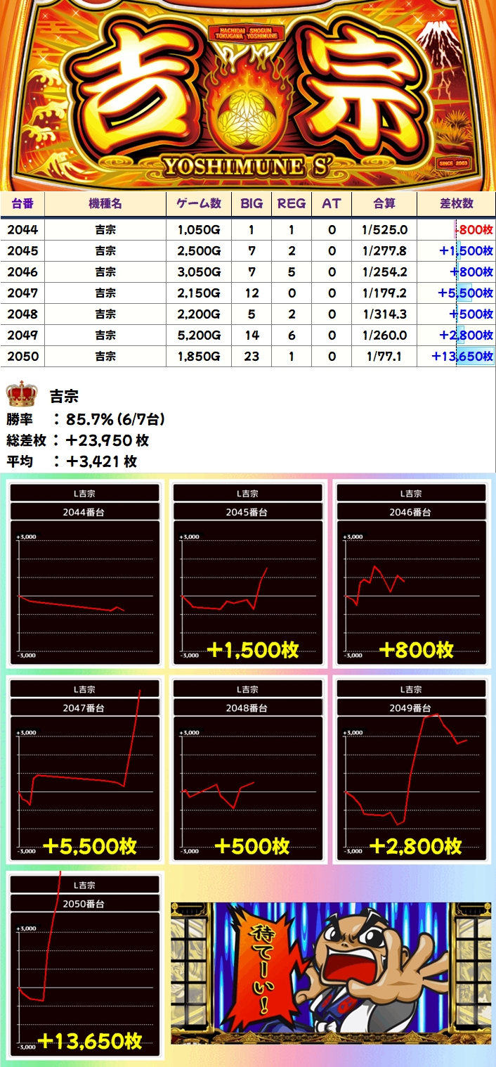 吉宗(6/7台+)➡平均+3,421枚