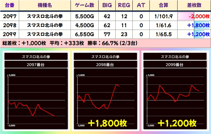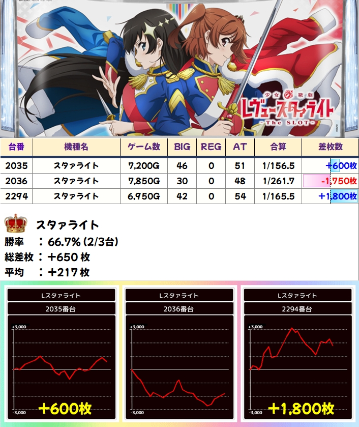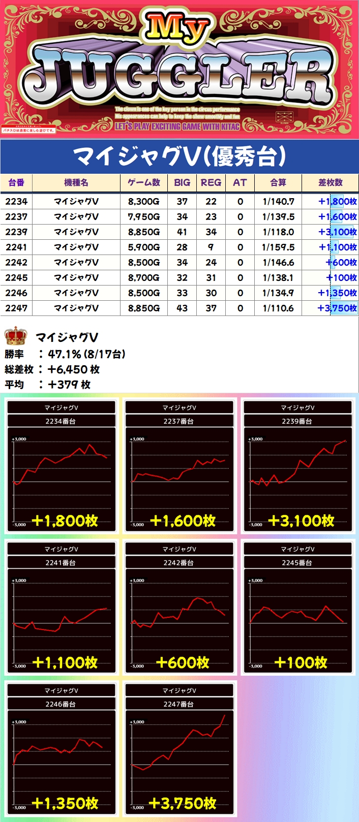 ジャグラーガールズ(3/3台+)➡平均+1,667枚