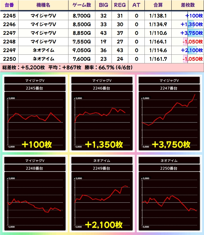 【6台並び】マイジャグ&ネオアイム(2245-2250番台)