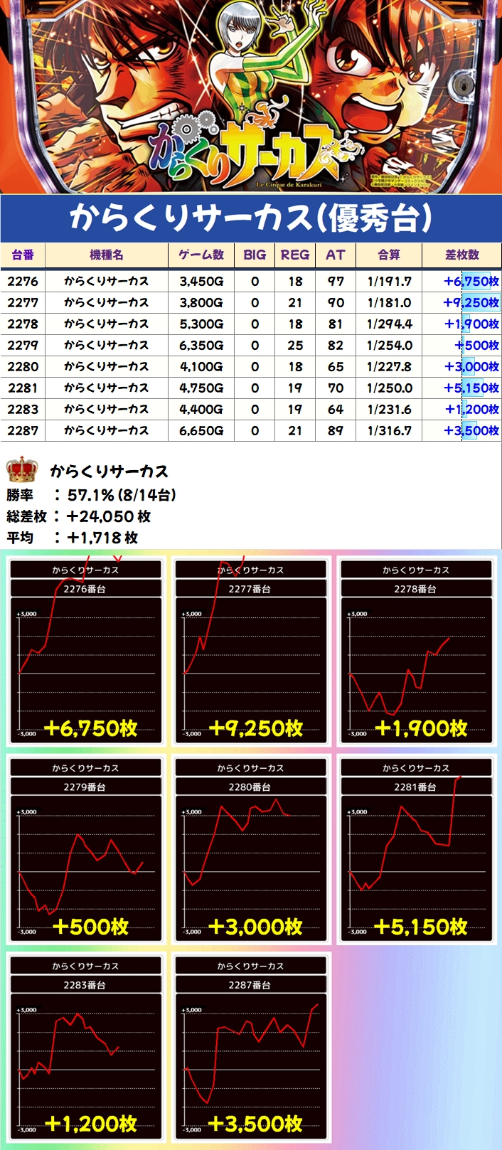 からくりサーカス(8/14台+)➡平均+1,718枚