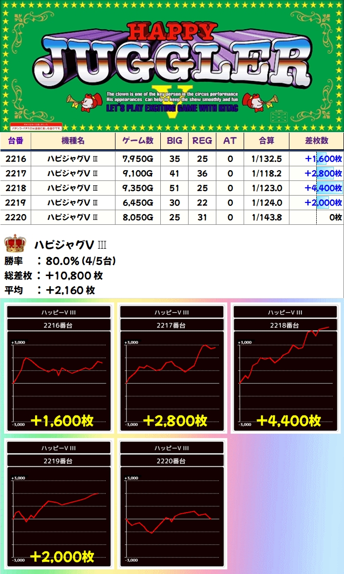 ハピジャグ(4/5台+)➡平均+2,160枚