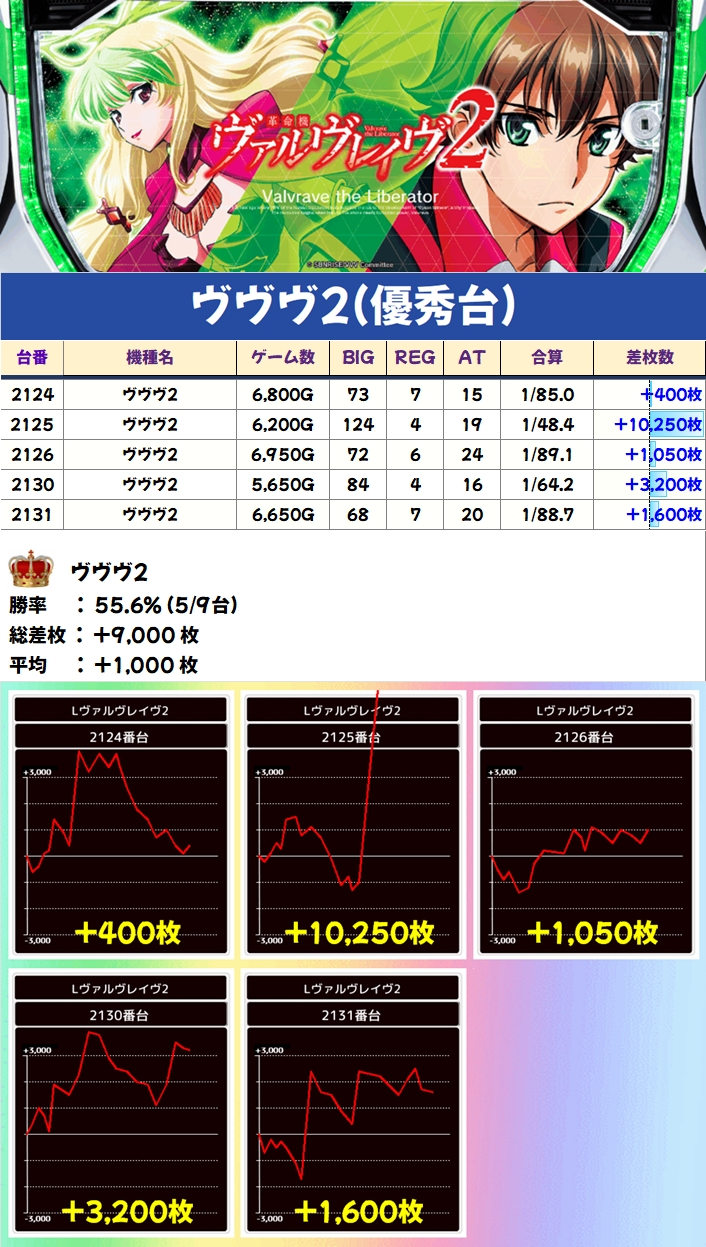 ヴヴヴ2(5/9台+)➡平均+1000枚