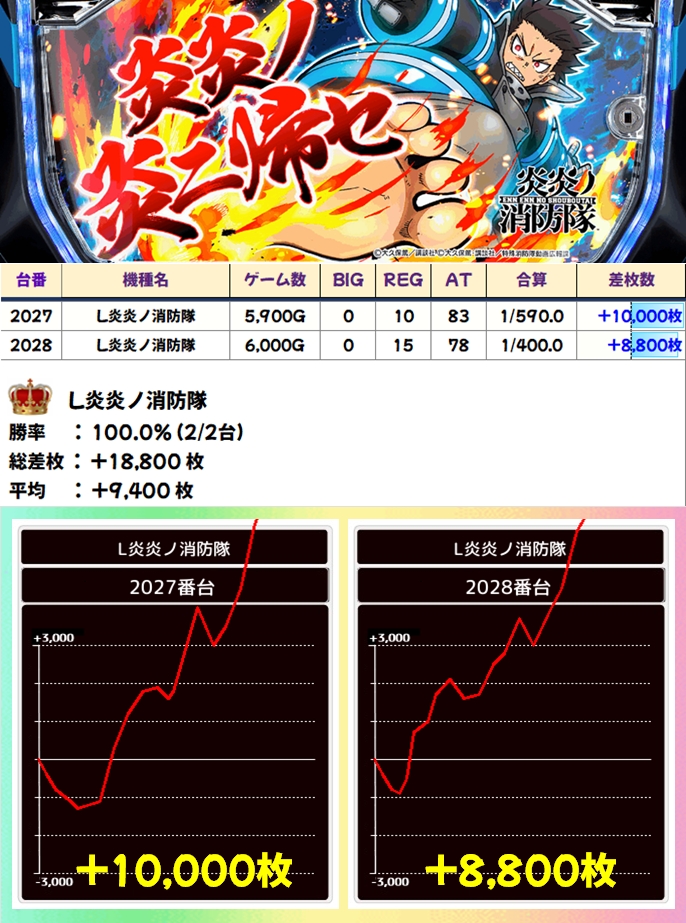 炎炎ノ消防隊(2/2台+)➡平均+9,400枚