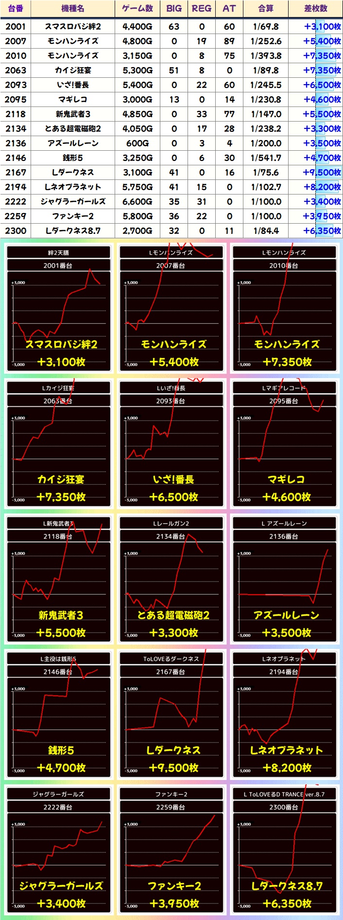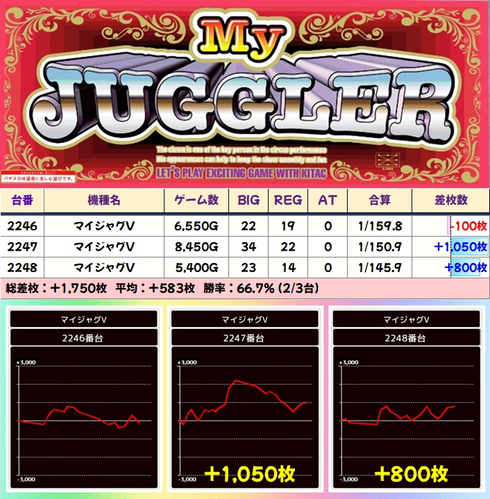 いずれの機種もしっかりと結果を残し、平均2000枚を超える機種もありました!