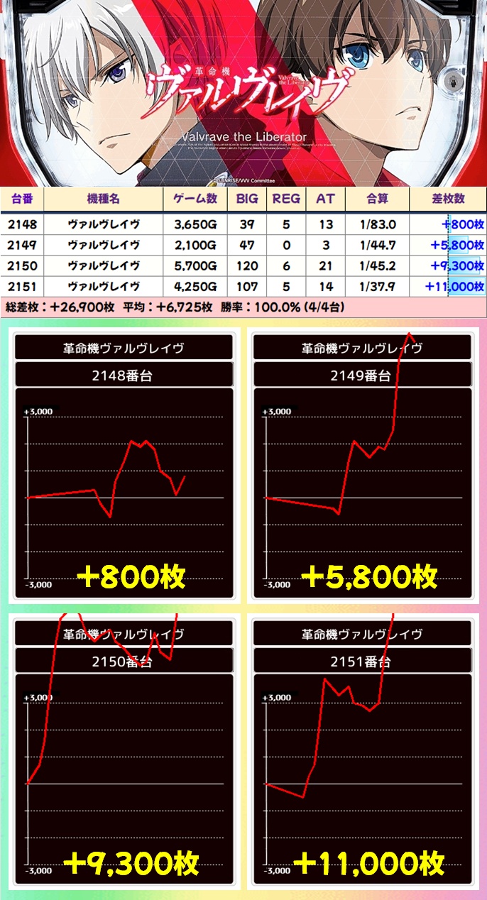 ヴァルヴレイヴ(4/6台+)➡平均+3,725枚