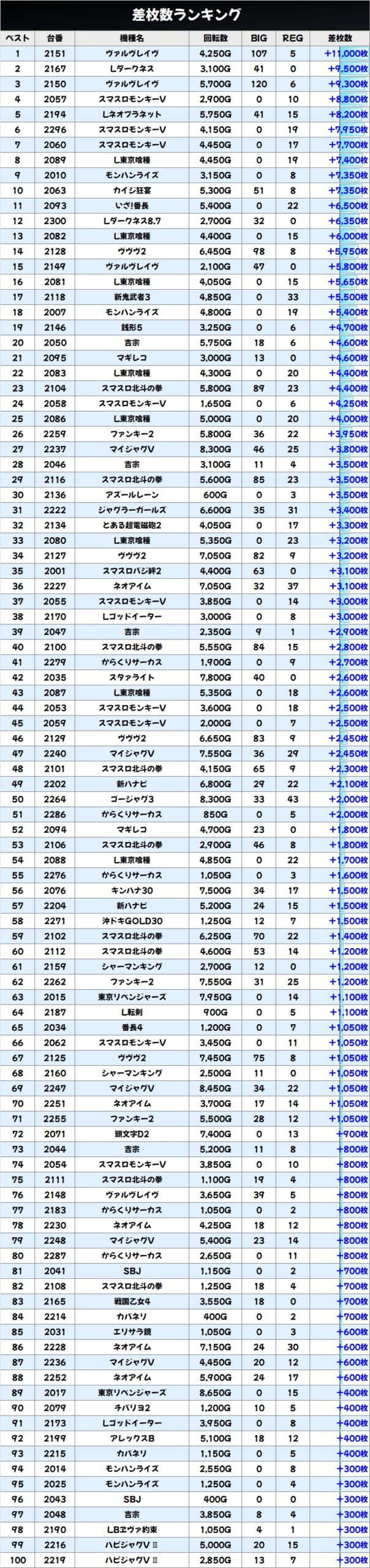 差枚数ランキング&島図をチェック!