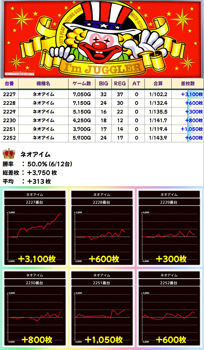 ネオアイム(6/12台+)➡平均+313枚