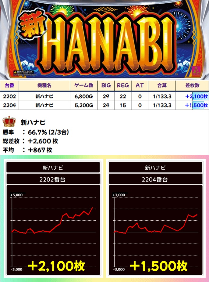 新ハナビ(2/3台+)➡平均+867枚