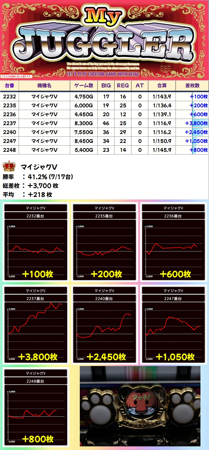 マイジャグV(7/17台+)➡平均+218枚