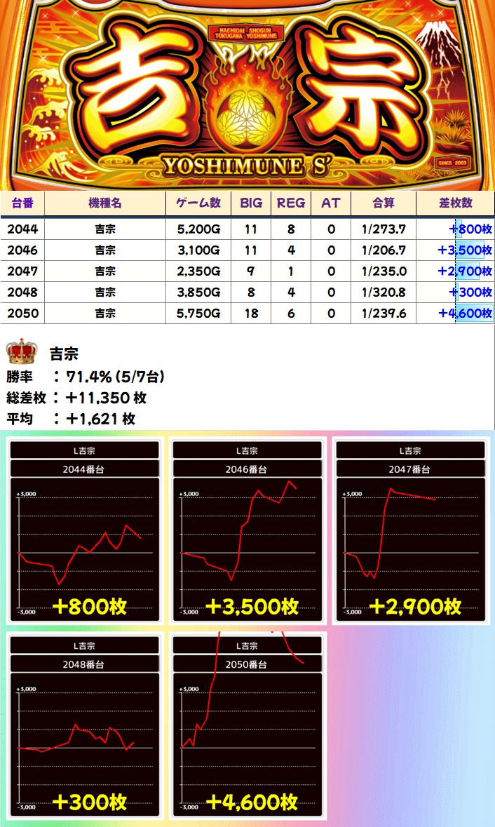 吉宗(5/7台+)➡平均+1621枚