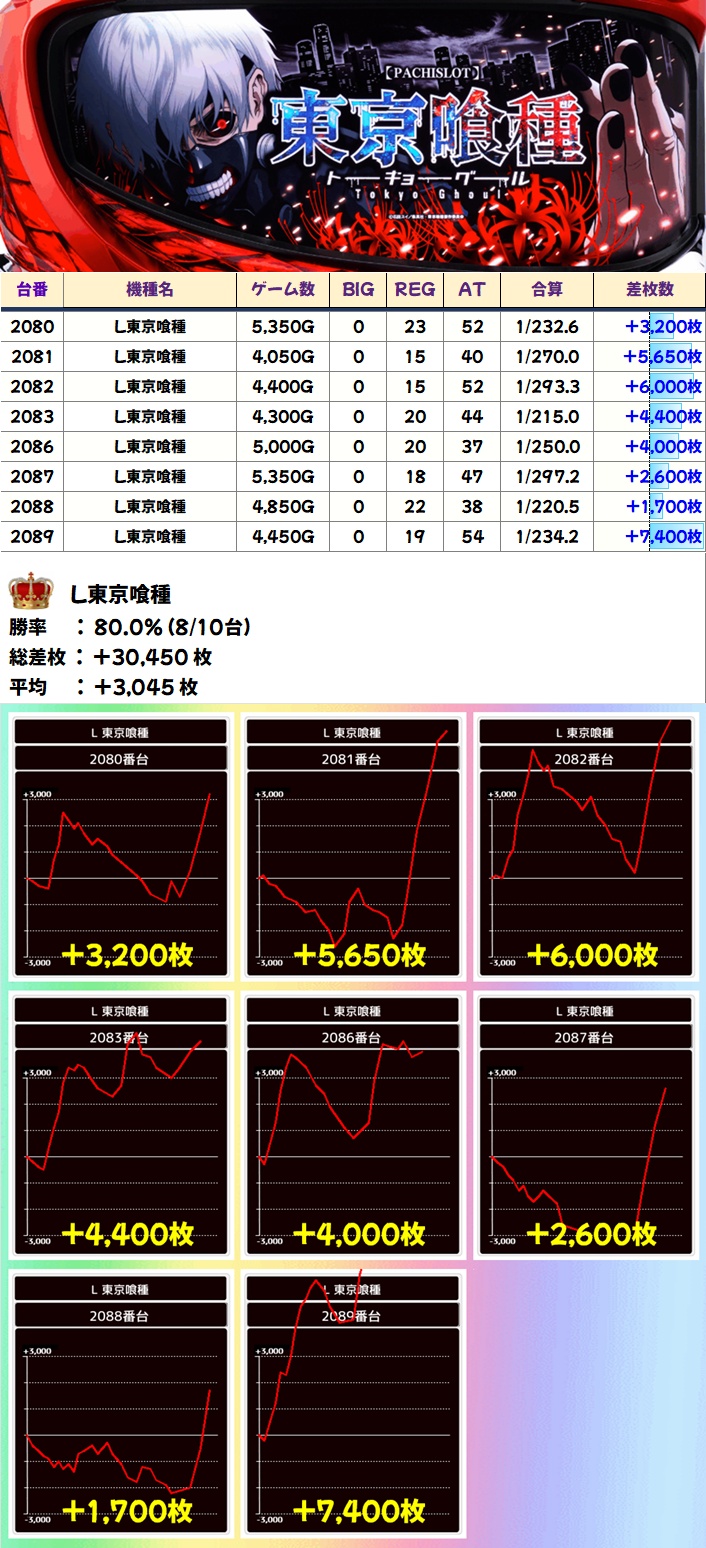 東京喰種(8/10台+)➡平均+3,045枚