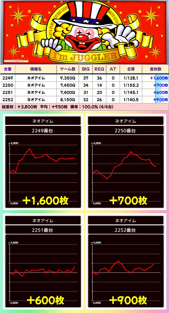 ジャグはファンキー2とネオアイムの2シリーズが優秀でした!結果はもちろん稼働からも打ち手は察していたことでしょう。