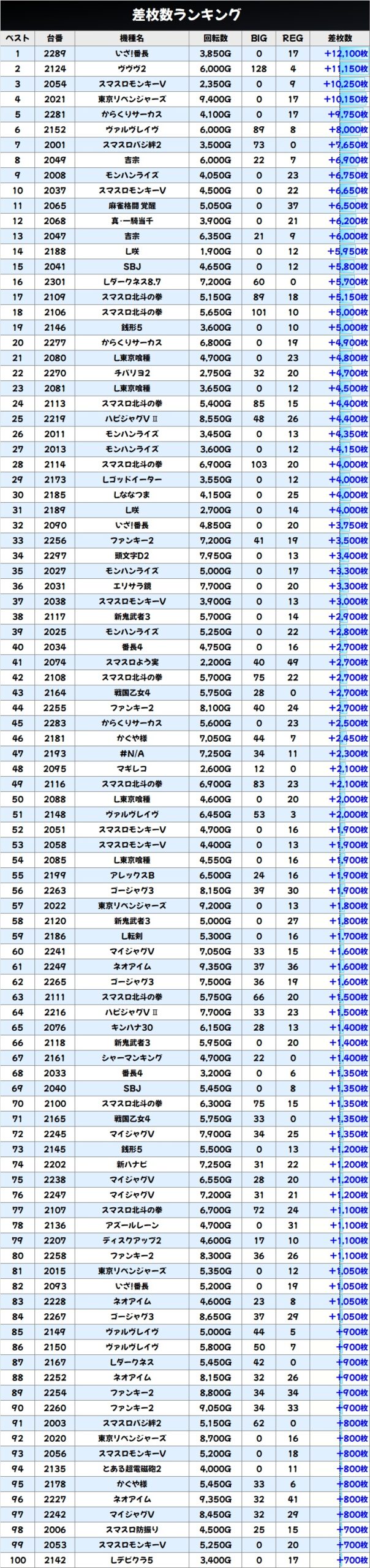 咲や銭形5からは5000枚超も確認!