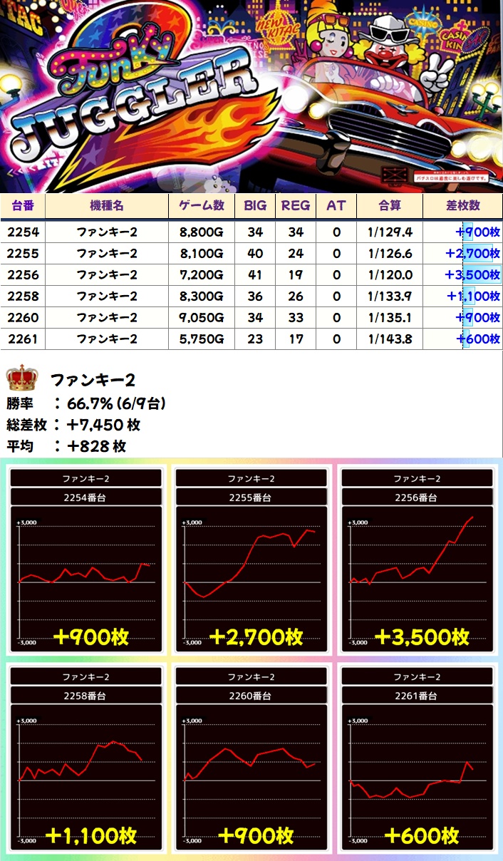 ファンキー2(6/9台+)➡平均+828枚