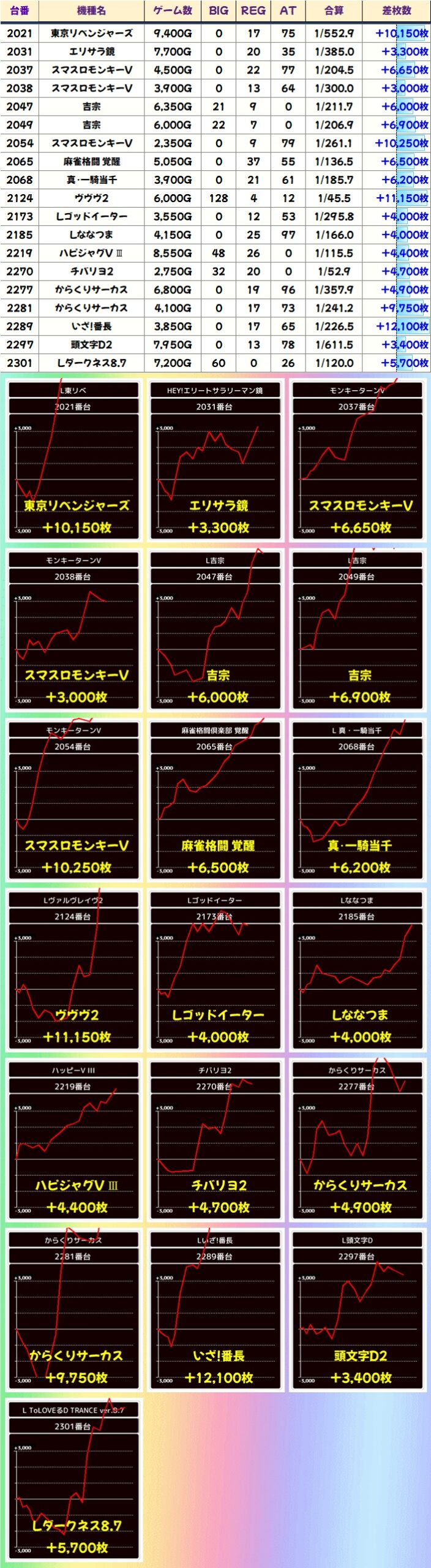 前述した仕掛け以外にも「ヴヴヴ2」「モンキーV」「からくりサーカス」からは万枚クラスの台など単品の優秀台もたっぷりありました!