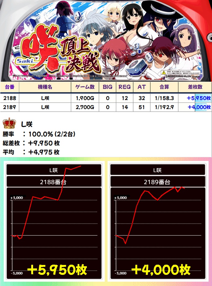 咲(2/2台+)➡平均+4,975枚