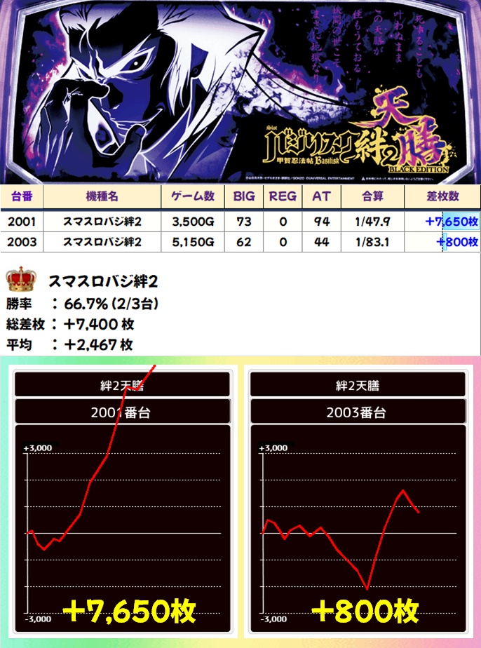 天膳ブラック(2/3台+)➡平均+2,467枚