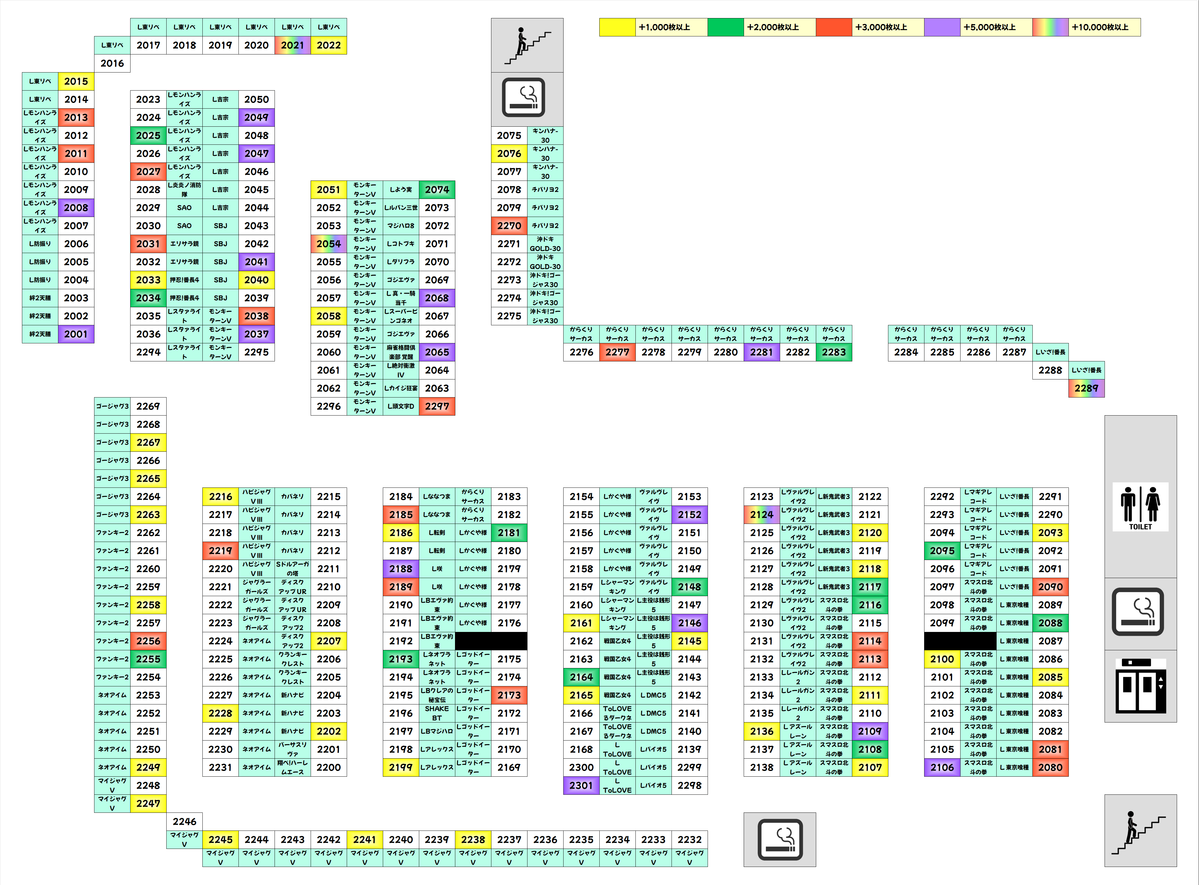 土曜日は並びが強いのが特徴で、東リべや喰種の並びは平均3000枚超!立ち回る際はいかなる場合も並びを意識するとよさそうです