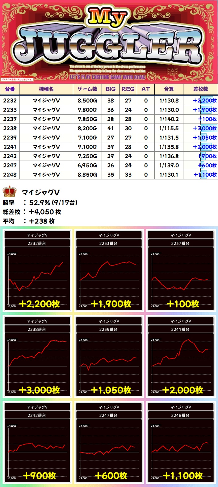 今回も平均+364枚&総差枚+10.9万枚としっかり結果を残しました!