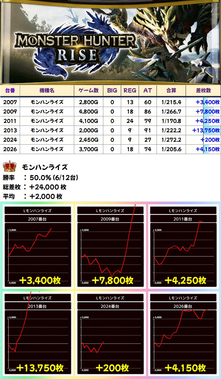 モンハンライズ(6/12台+)⏩Ave+2,000枚