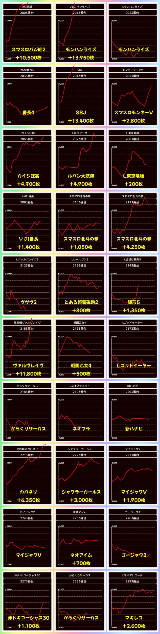 第1土曜は優秀末尾が複数出現することがあり、今回も末尾仕掛けを2本確認!末尾③は平均が2000枚を超えるほどの結果となりました!