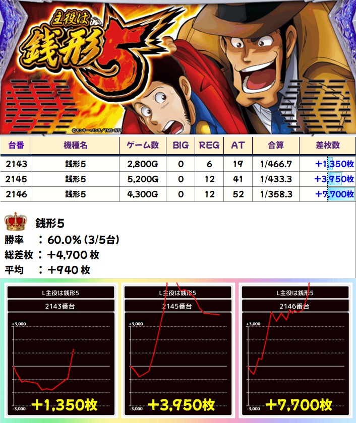 主役は銭形5(3/5台+)⏩Ave+940枚