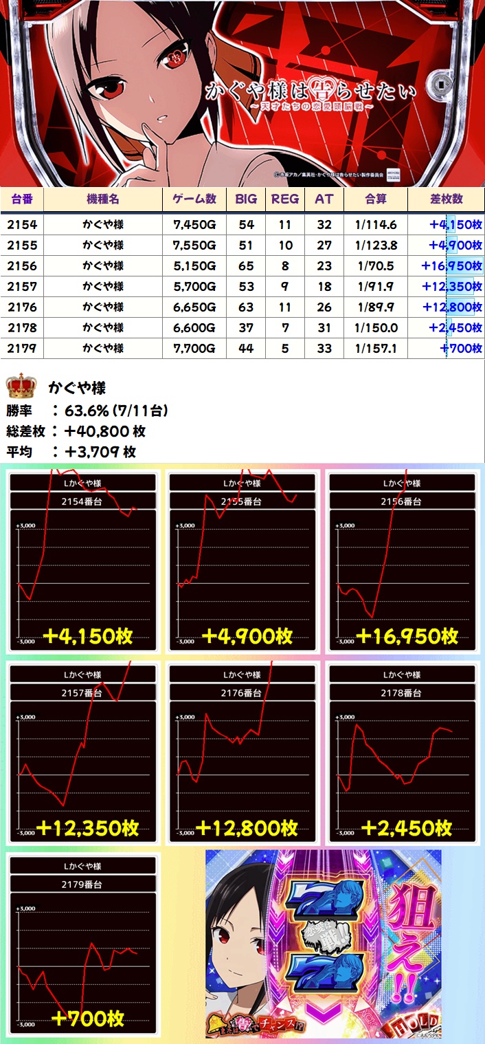 人気スマスロを中心に高配分機種も多数!かぐや様や東リべ、ヴヴヴ2、からくりなど大半の機種から1台以上万枚クラスが飛び出しており、各機種1台は最高品質台があった可能性あり!