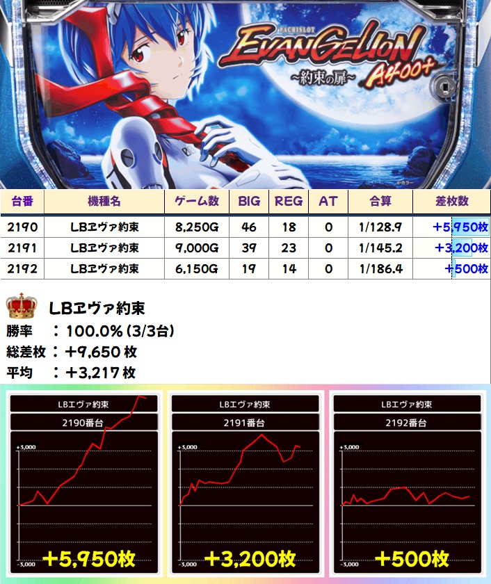 エヴァ約束(3/3台+)➡平均+3,217枚