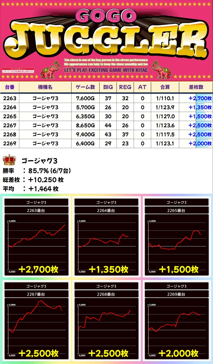 ゴージャグ3(6/7台+)➡平均+1,464枚