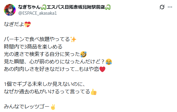 公式Xでは「なぎちゃんの独り言」もしっかり発動。公式Xのお知らせは大体20時に、そこから30分後に独り言がポストされる傾向にあるので、しっかりチェックしておきましょう。