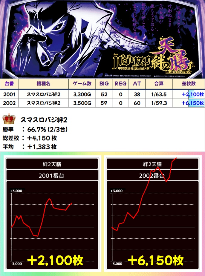 バジ絆天膳(2/3台+)➡平均+1383枚