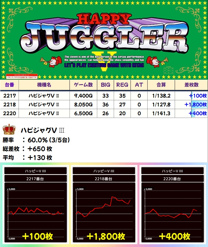 ハピジャグ(3/5台+)⏩Ave+130枚