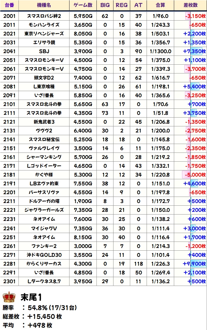 第1土曜は優秀末尾が基本的にはあるので、立ち回る際に意識しておいて損はないですよ!