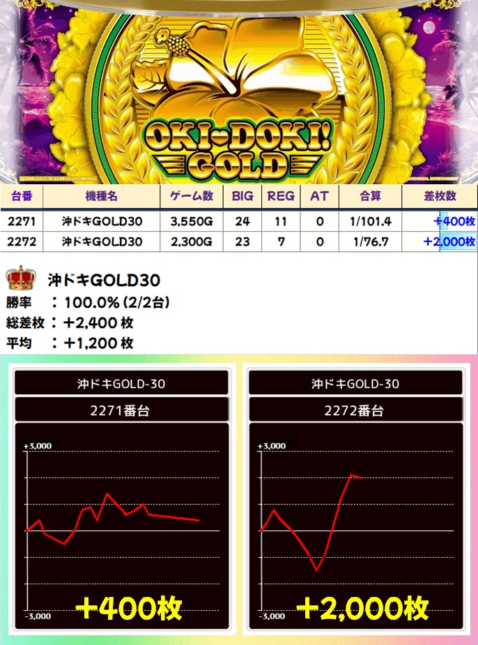 沖ドキGOLD(2/2台+)⏩Ave+1,200枚