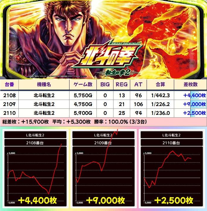 北斗転生(2108-2110番)→平均5300枚