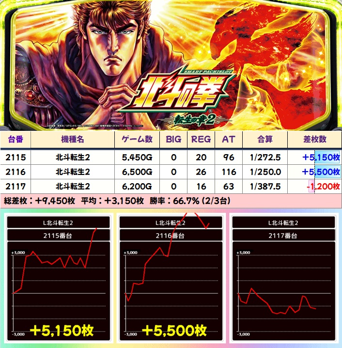 北斗転生2(2115-2117番)→平均3150枚